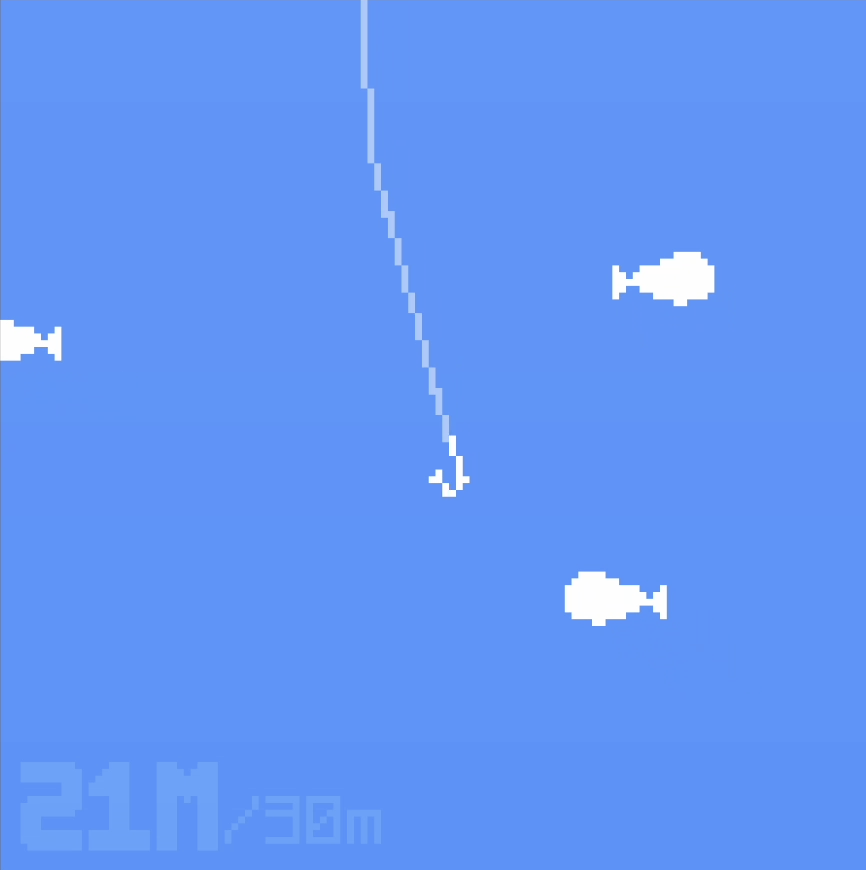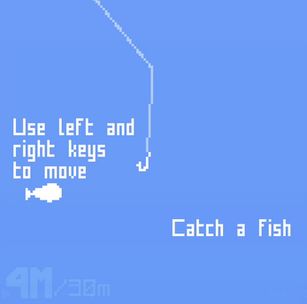 Once you cast-off, use the left and right arrow keys to direct your hook to try and catch a fish. It'll keep descending until it reaches the end of your line, so make sure to grab something!